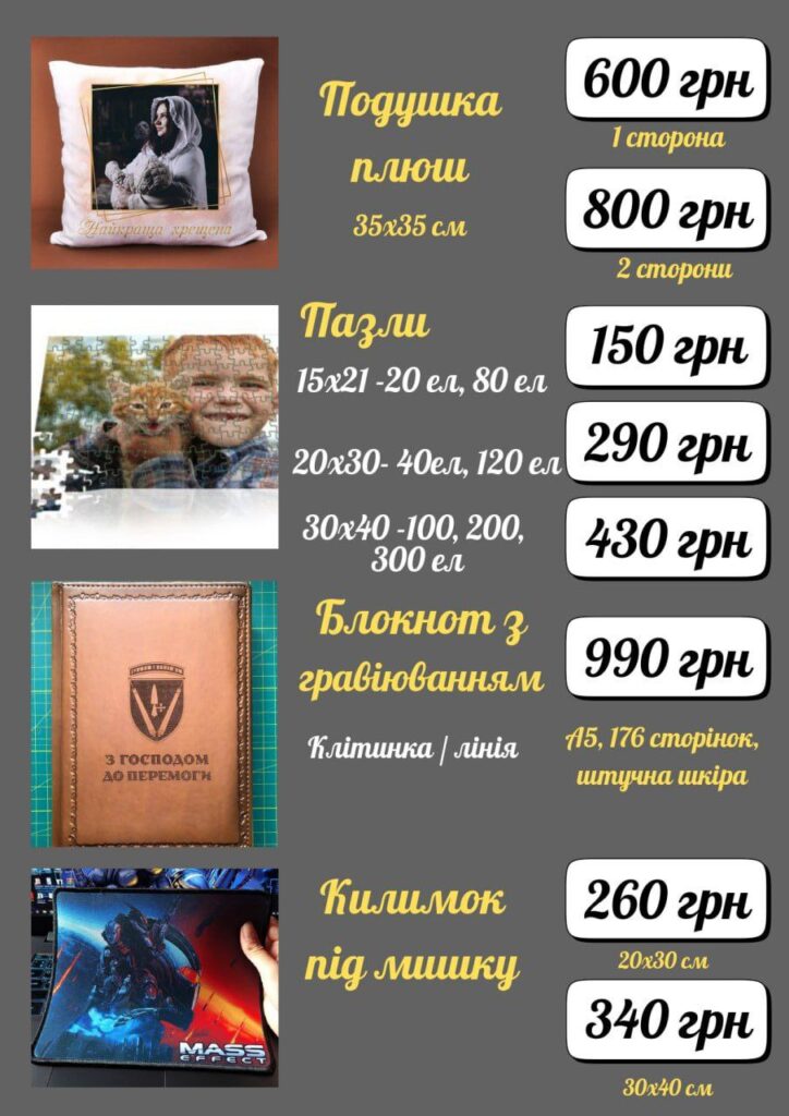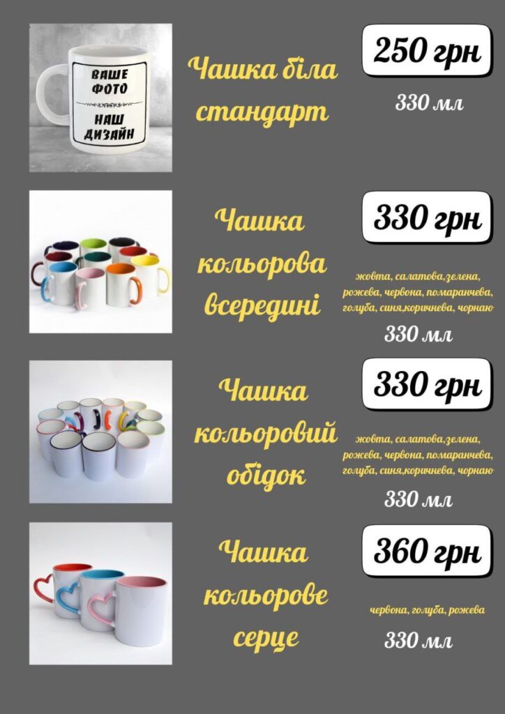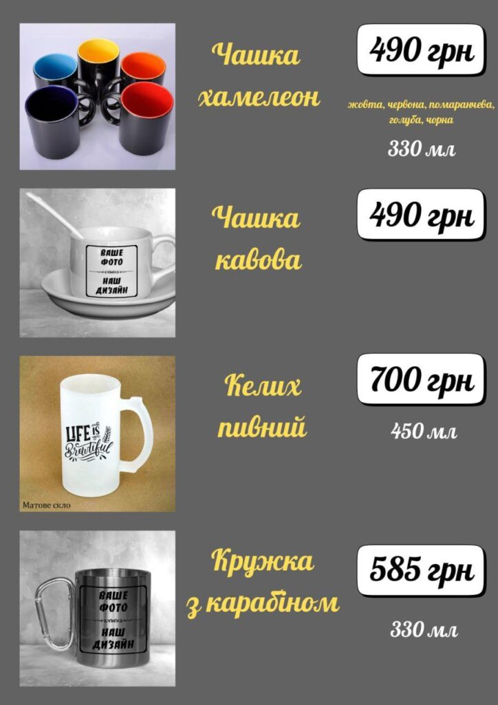 Друк на чашках, футболках, пазлах, подушках і т.д.